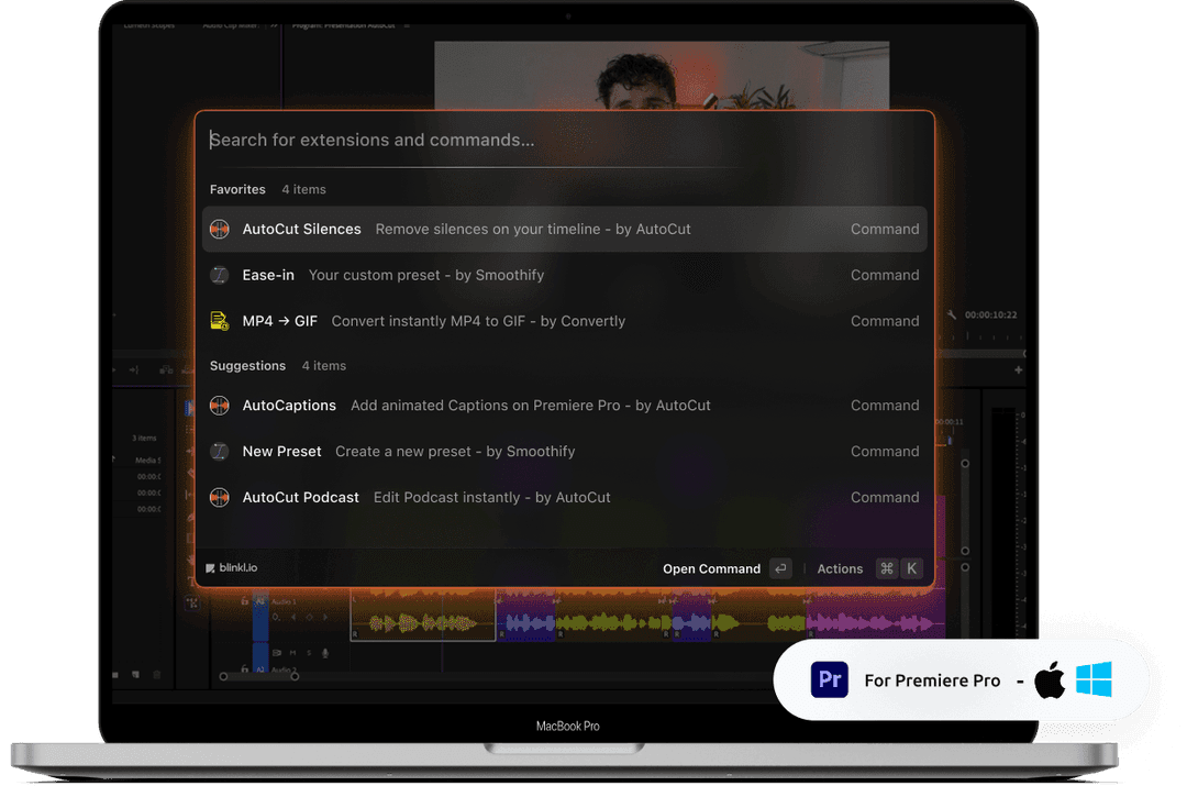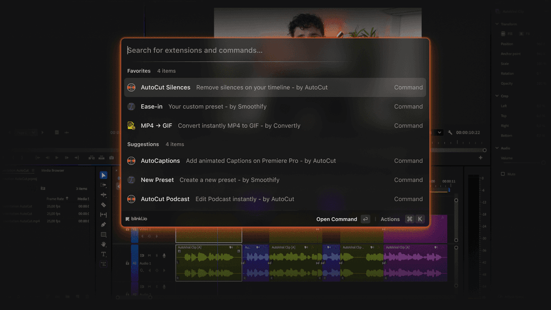 blinkl.io brings the power of shortcuts, AI, and automation right into Premiere Pro.