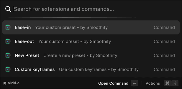 Smoothify is a blinkl.io extension that brings precise motion control to your Premiere Pro keyframes. It lets you design and apply custom easing curves. From smooth accelerations to bouncy transitions: all inside your editing timeline.